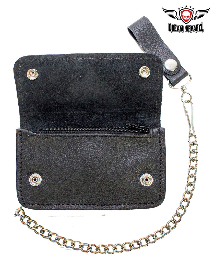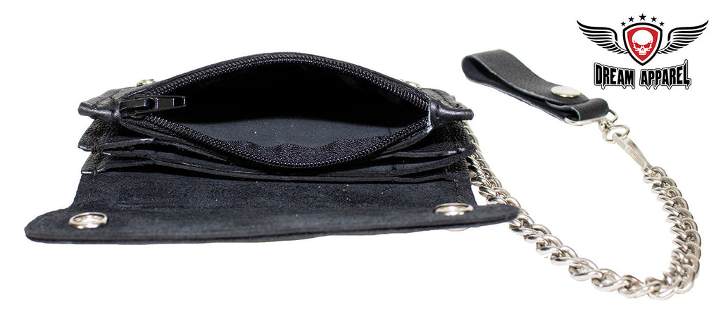 Black Naked Cowhide Leather Winged V-Twin Engine Multi-Pocket Wallet