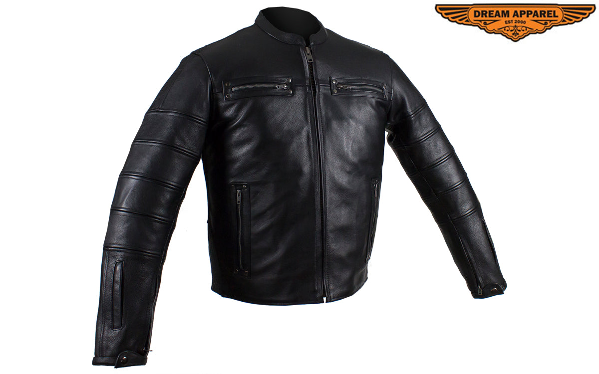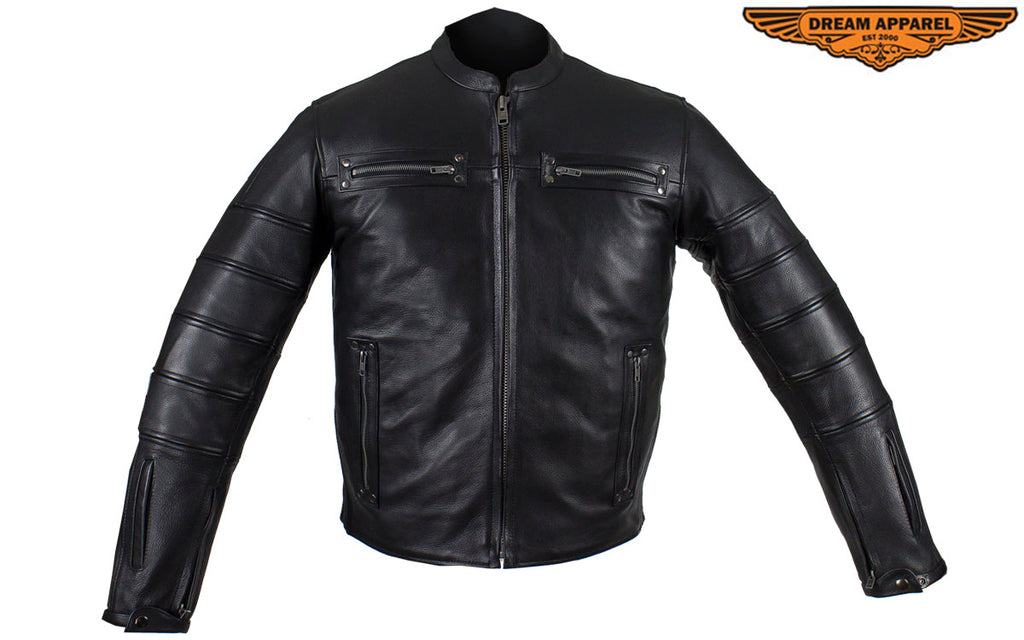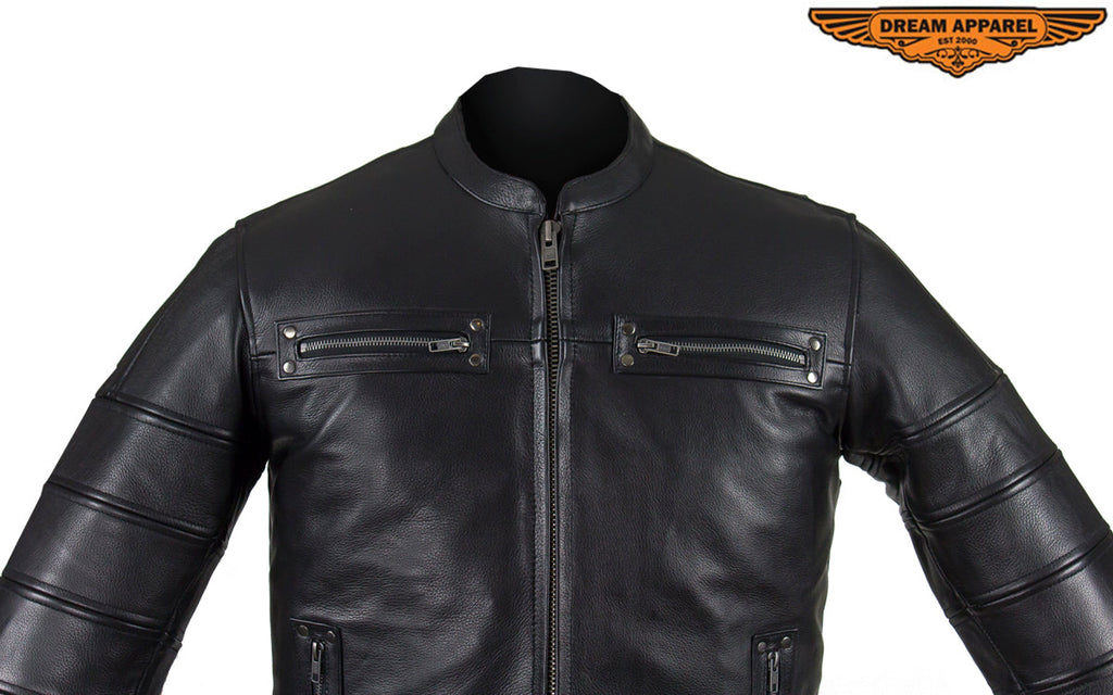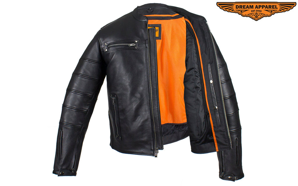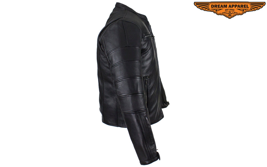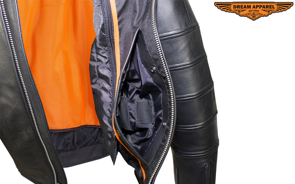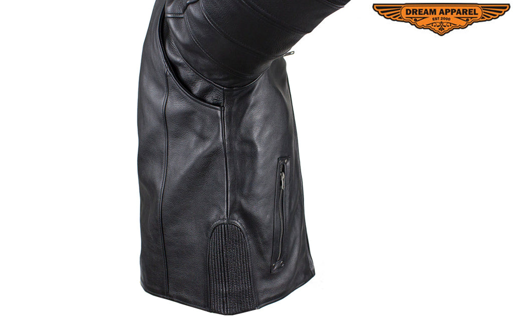 Black Pleated Leather Jacket with Concealed Carry Pockets