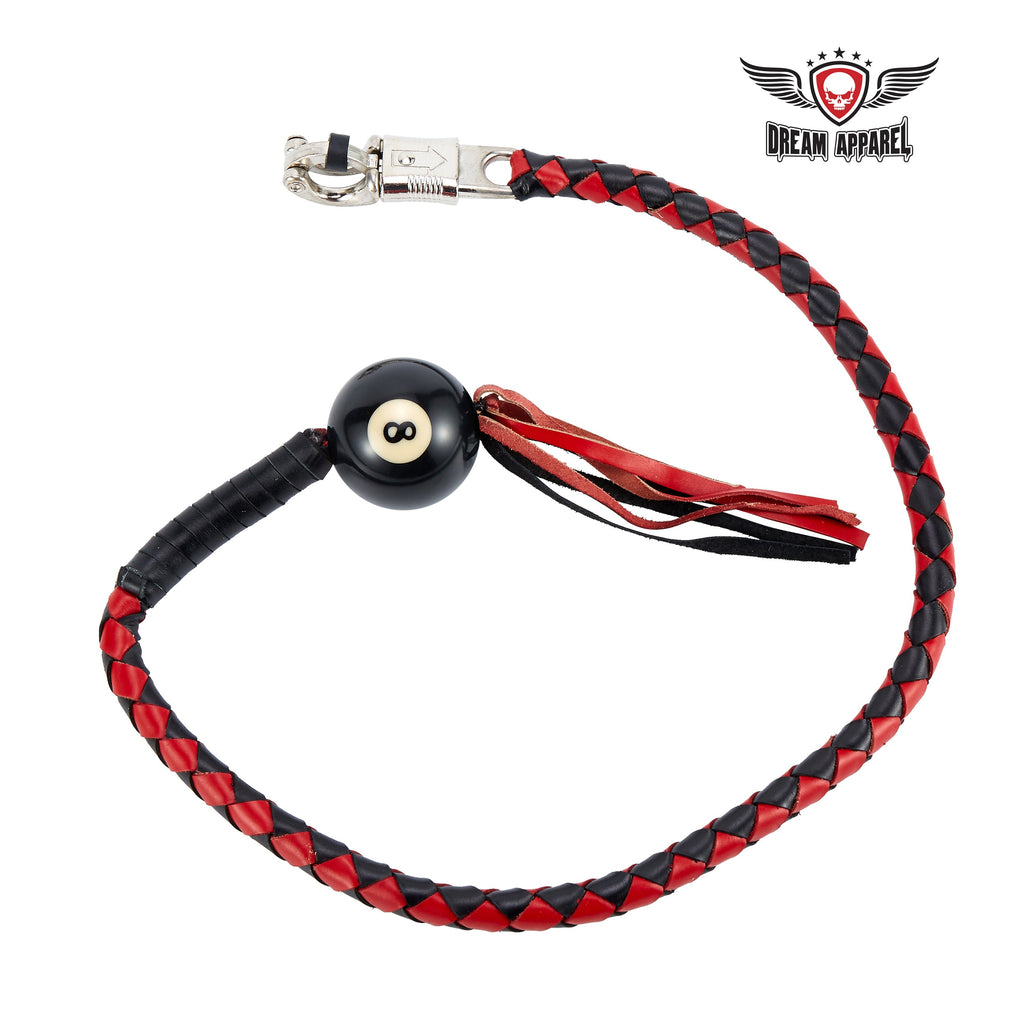 Dream Apparel 36" Long Black And Red Fringed Get Back Whip With Black Pool Ball 8