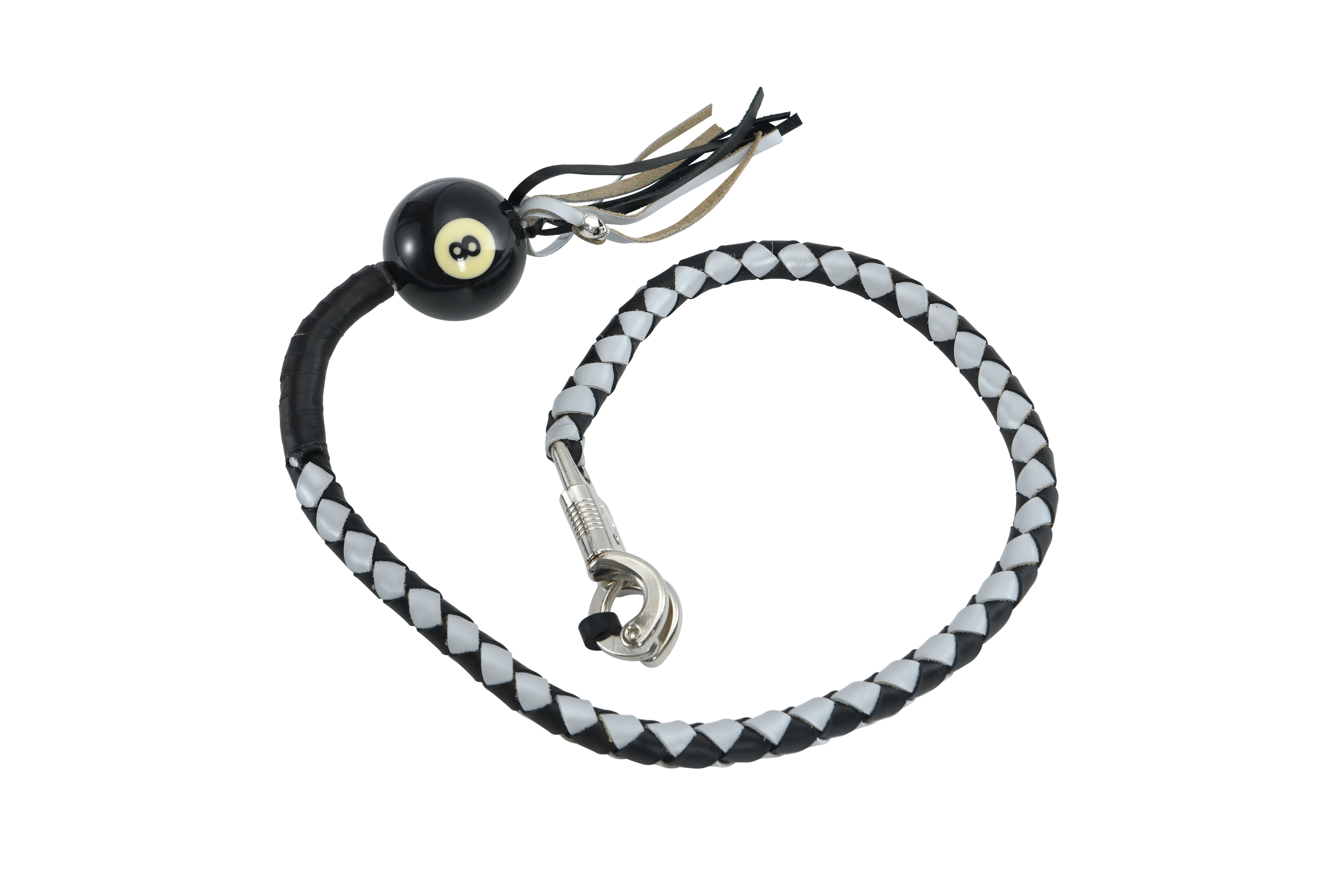 - 36" Long Black And Silver Hand-Braided Get back Whips with Pool Ball 8