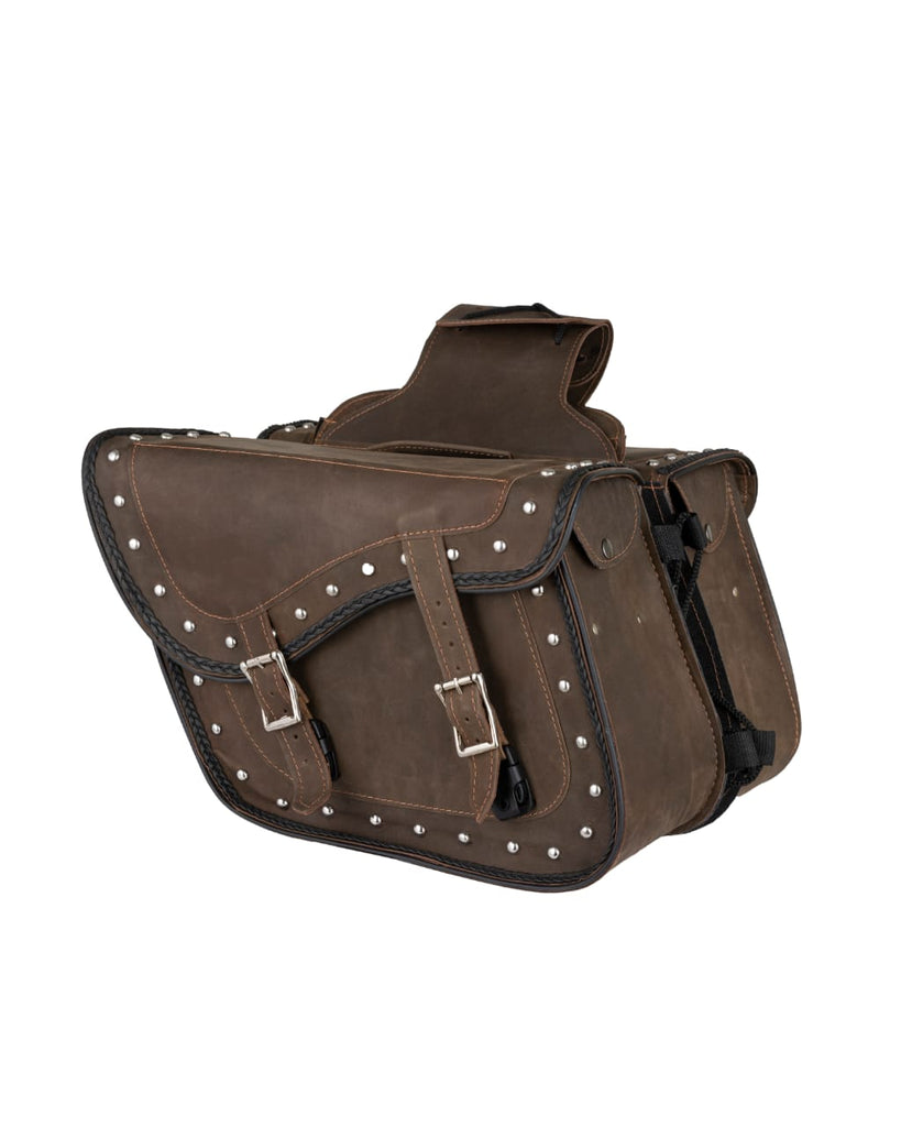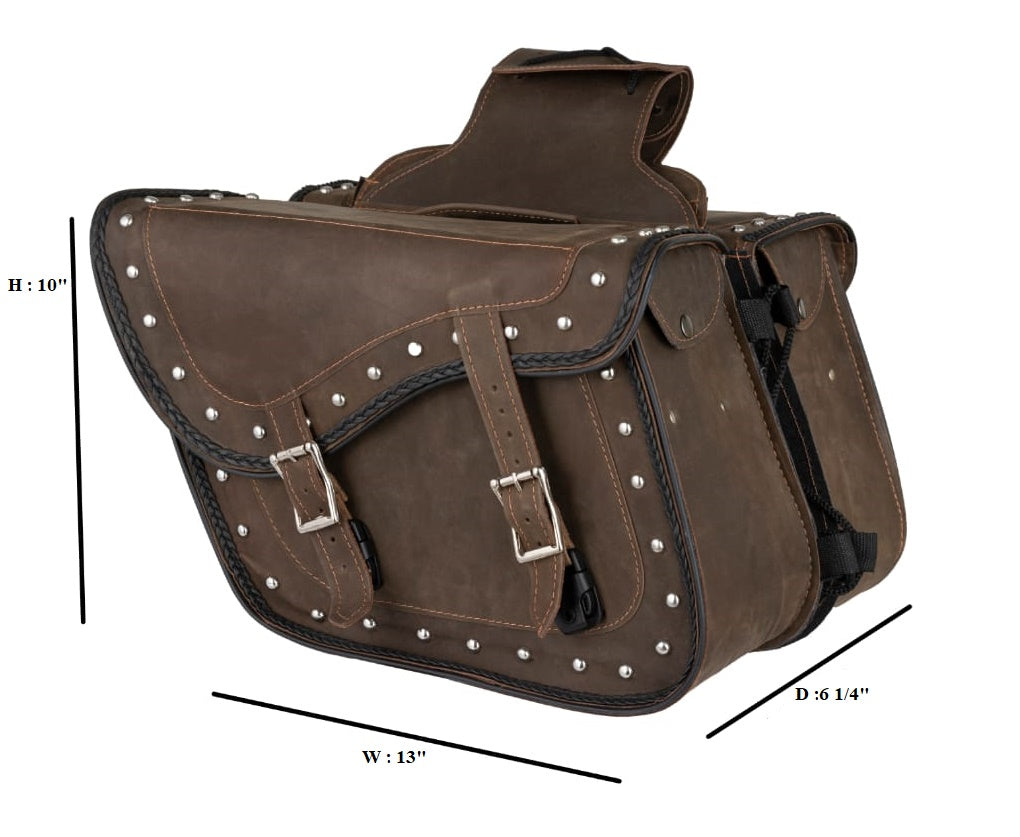 Dream Apparel Genuine Vintage Brown Naked Leather Concealed Carry Saddlebag with Braid