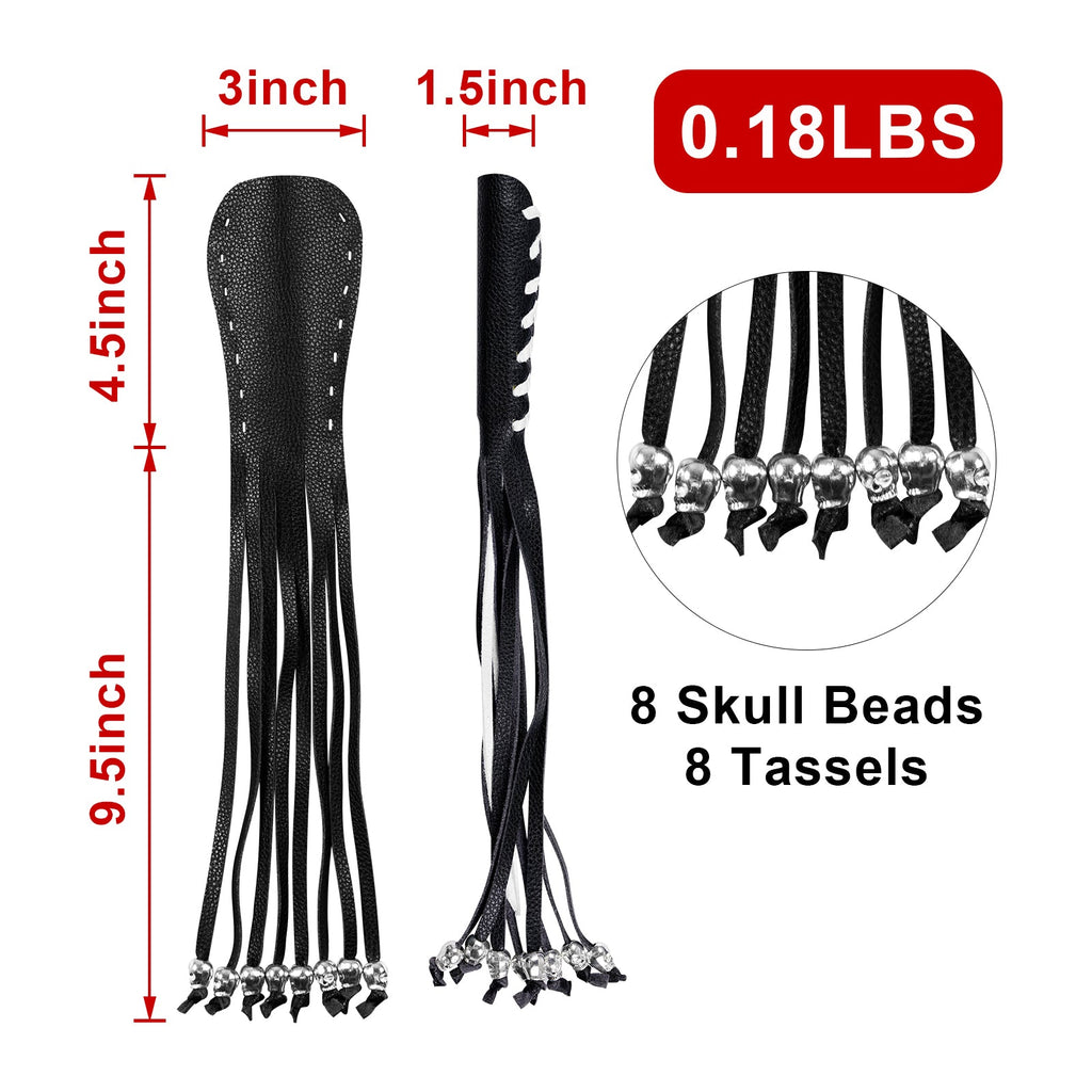 - Enhance the look of your motorcycle Skulls are affixed to the ends of fringes, creating a fashionable design