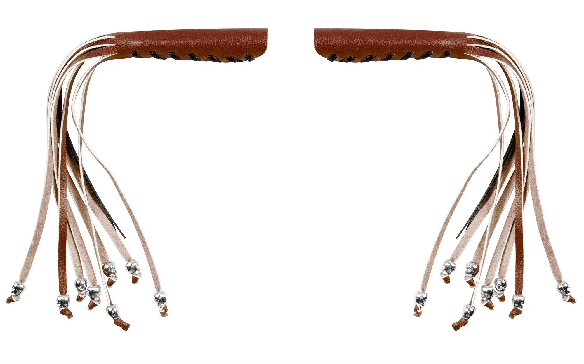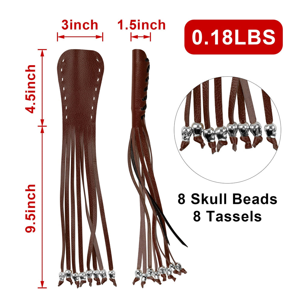 - Enhance the look of your motorcycle Skulls are affixed to the ends of fringes, creating a fashionable design