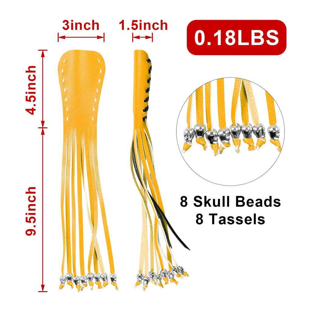 - Enhance the look of your motorcycle Skulls are affixed to the ends of fringes, creating a fashionable design