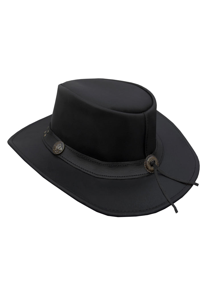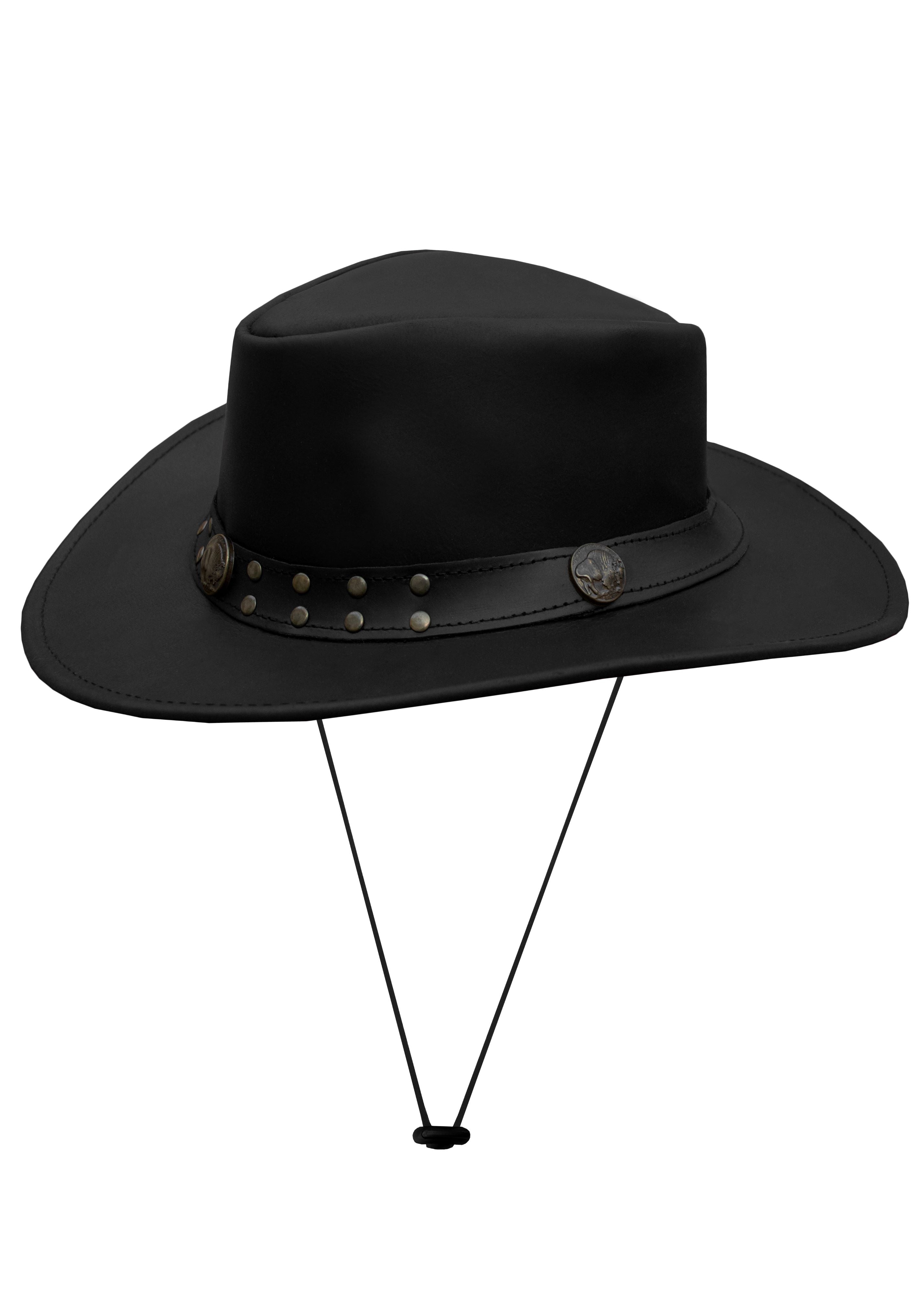 Dream Apparel Men's Black Premium Leather Western Cowboy Studded Hat for Halloween Deadman