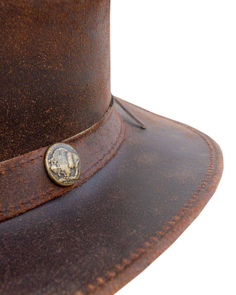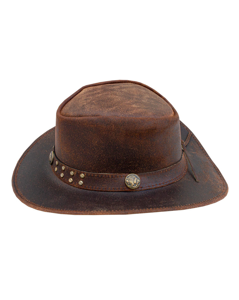 Dream Apparel Men's Brown Top-Grain Premium Leather Western Cowboy Studded Hat for Halloween Deadman