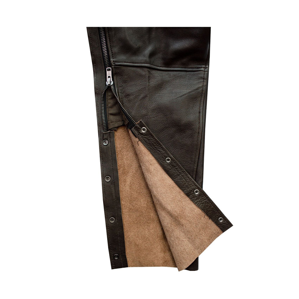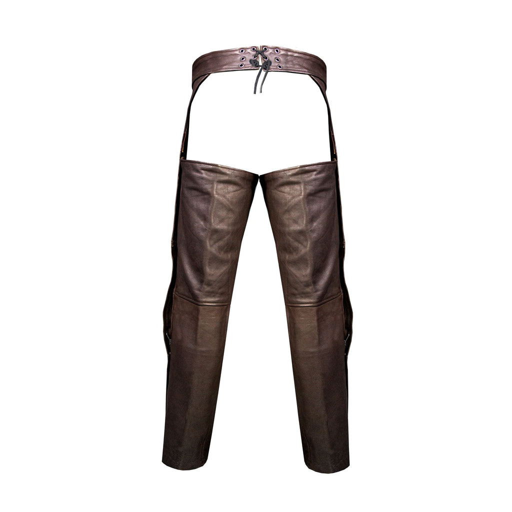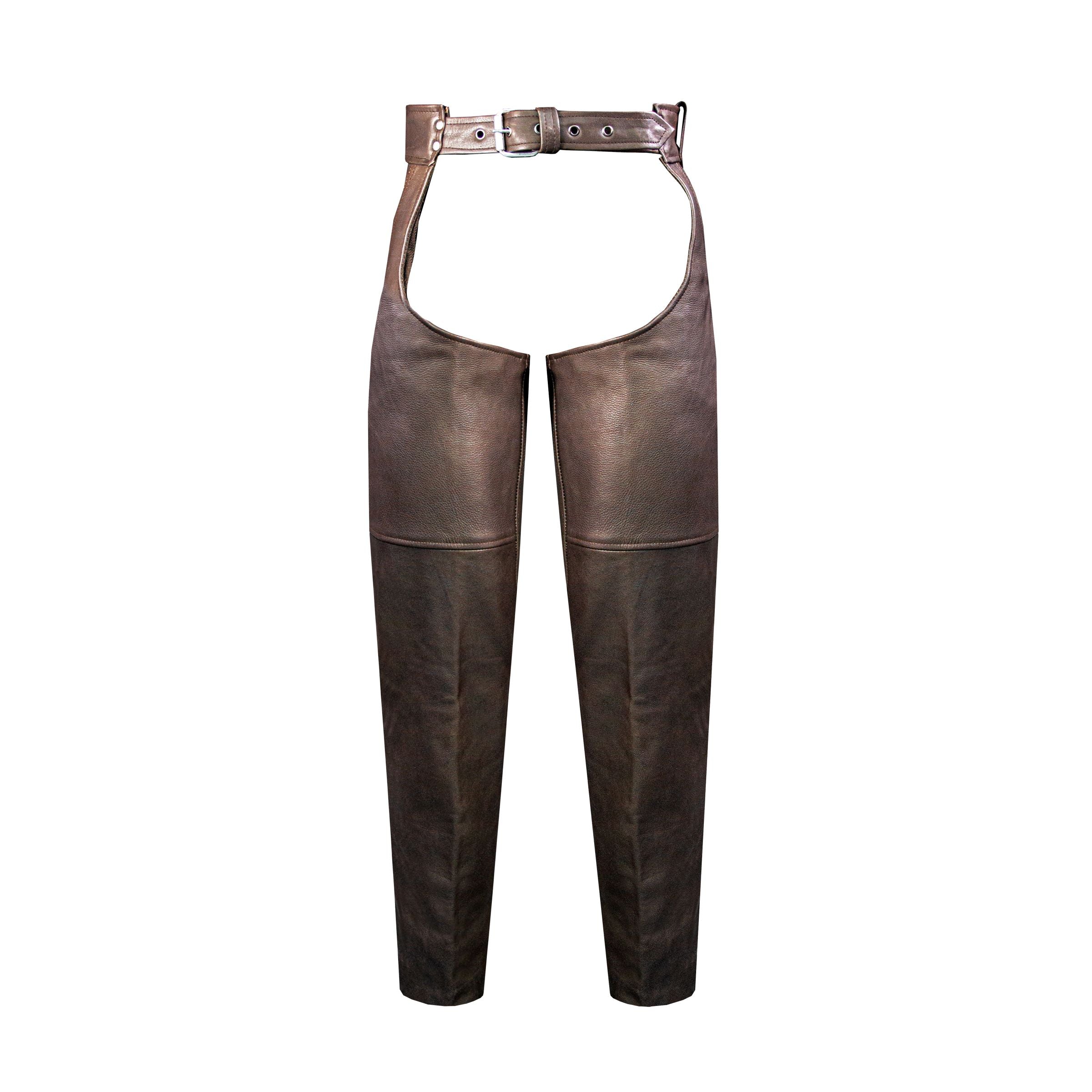Mens Brown Leather Motorcycle Chaps Premium Cowhide Leather