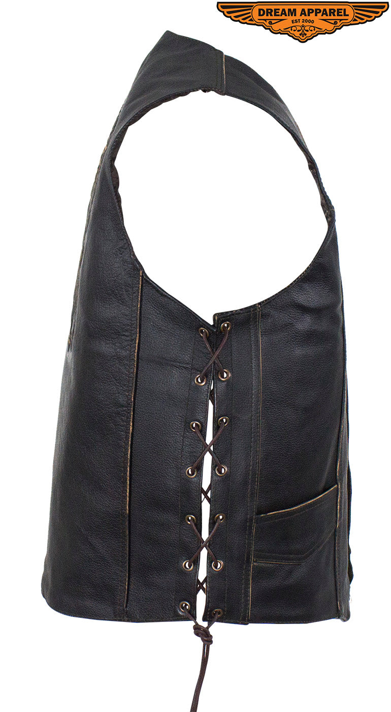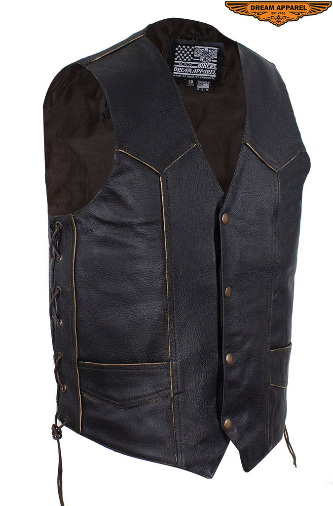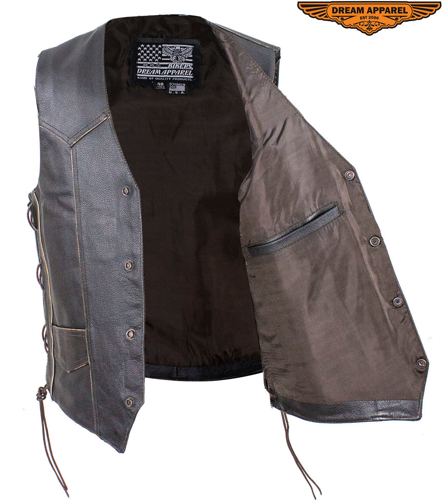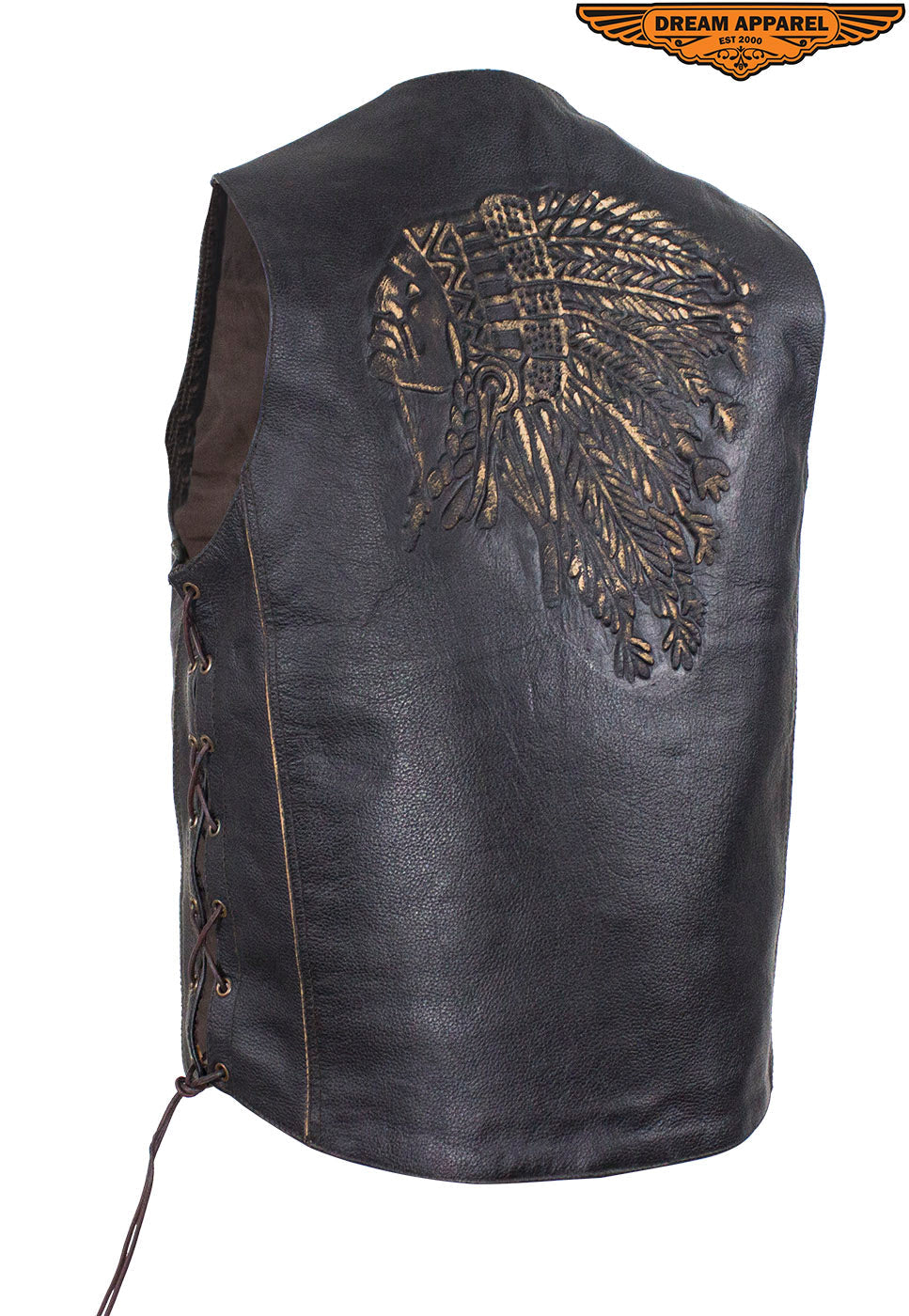 The Native American’s have a deep flow with freedom and travel. Out of the respect and pride for them, they are now going to be a new symbol, located here. Top Grade Genuine Leather, surfacing the smoothness of the leather, showing off its amazing quality. Tailored in the lining to the interior just how a king has it. Embroiled with The American Indian Head on the back, skidding off the canvas of this wondrous leather. 4 snaps on the front of the vest to bring it to life. Cruising down the sides of the vest are the laces, which help for better fitting inside, getting you to your happy place. The outrageous amount of pockets will only make you happier every time you need to free up your hands.
