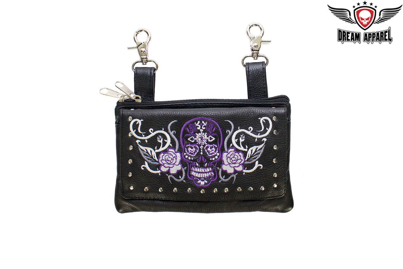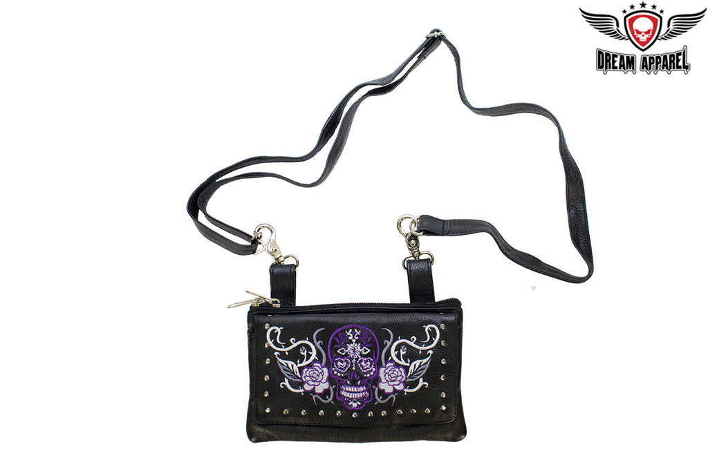 Studded Purple Sugar Skull Naked Cowhide Leather Belt Bag