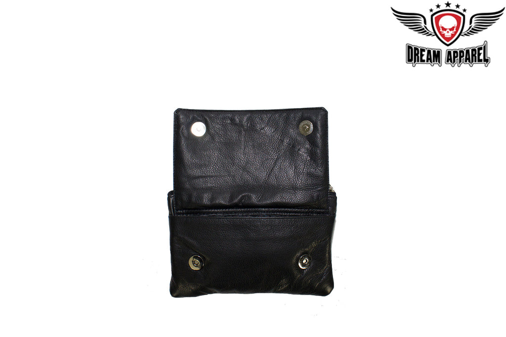 - Dual chrome magnetic flap pocket on front